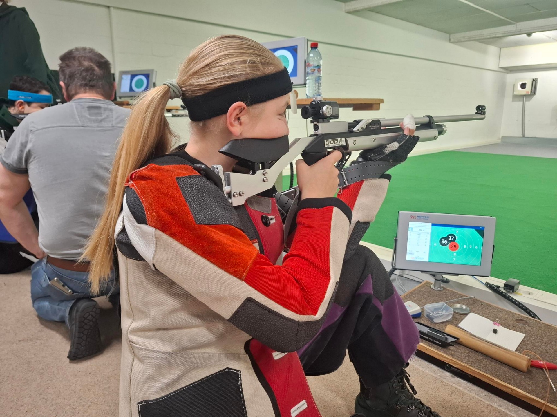Am 13.09.2025 war unsere jüngste aktive Schützin beim Norddeutschland-Cup in Neuss. Nachdem Ida schon bei den Deutschen Meisterschaften Freihand mit geschossen hat, war nun noch Auflage dran. Am 12.09.2025 ging es mit einer Fahrgemeinschaft organisiert von NDSB runter nach Düsseldorf. Nachdem man sich alles angeschaut hatte, alle was Essen konnten, konnten die Kids noch am Abend etwas trainieren und sich auf den Stand einstellen. Dort konnte dann gleich geprüft werden ob die Lichtpunktgeräte auch kompatibel mit den Anlagen sind. Außerdem konnten sich die Kids etwas auf den Boden einstellen. Da der Wettkampf in der Sporthalle stattfand, konnte man durch den Boden jede Menge Bewegung wahrnehmen. Zurück in der Jugendherberge ging es direkt ins Bett. Am nächsten Tag ging es direkt morgens so. Um 10 Uhr sollten die ersten Schützen starten. Für Ida ging es um 12.40 Uhr an den Start, Mit guten 195,1 Ringen konnte sie sich auf den 5 Platz verewigen. Insgesamt war es eine gute Ausfahrt.
